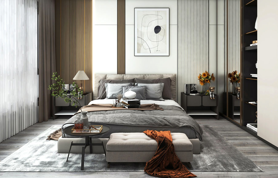 Trang trí nội thất phòng ngủ với bức tường đặc trưng