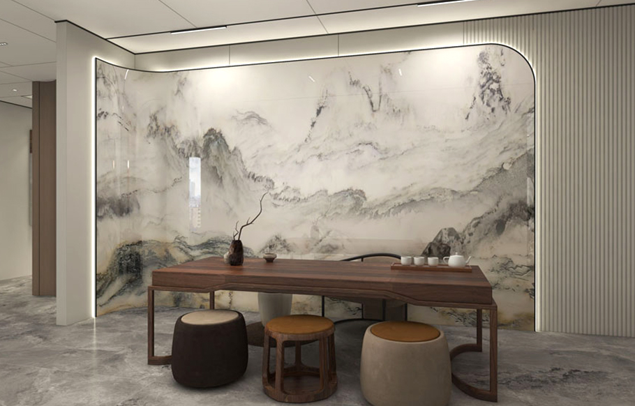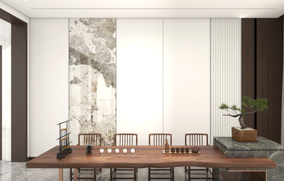Trang trí nội thất phòng trà Tường đặc trưng